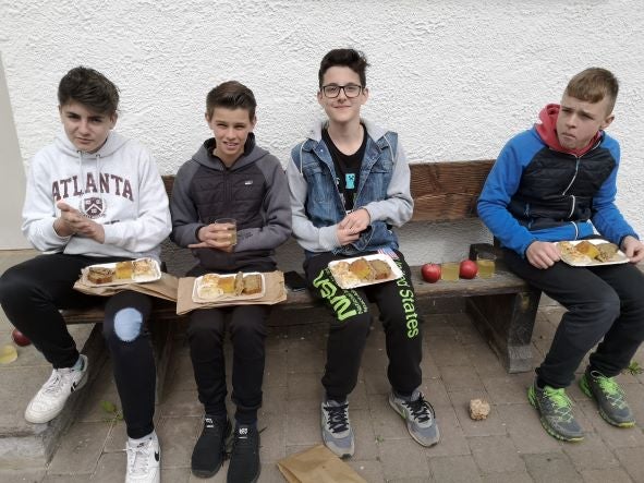 Beim diesjährigen Workshop für Mittelschulen "Kreativ-einzigartig-vielseitig" haben insgesamt 11 Mittelschulklassen mit insgesamt 226 Schüler:innen teilgenommen. Der Gewinner des Quiz ist die Klasse 2 A der MS St. Pankraz. Sie wurden von einigen Schülerinnen der 2. Klasse der Fachschule Tisens und deren Fachlehrerin Renate Kofler mit einer leckeren und gesunden Jause überrascht.