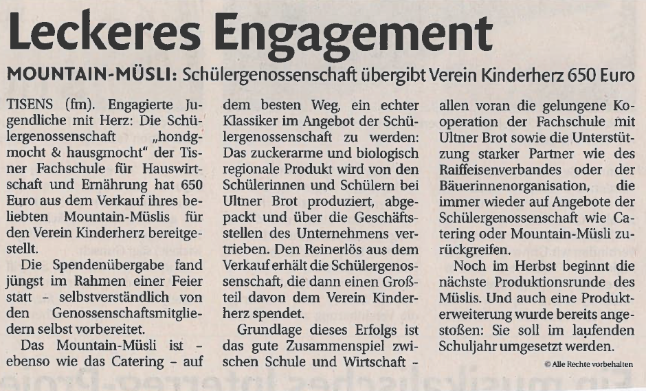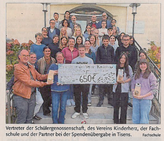 Leckeres Engagement 14.10.2025 | News | Pressespiegel Mountain-Müsli: Schülergenossenschaft übergibt Verein Kinderherz 650 Euro