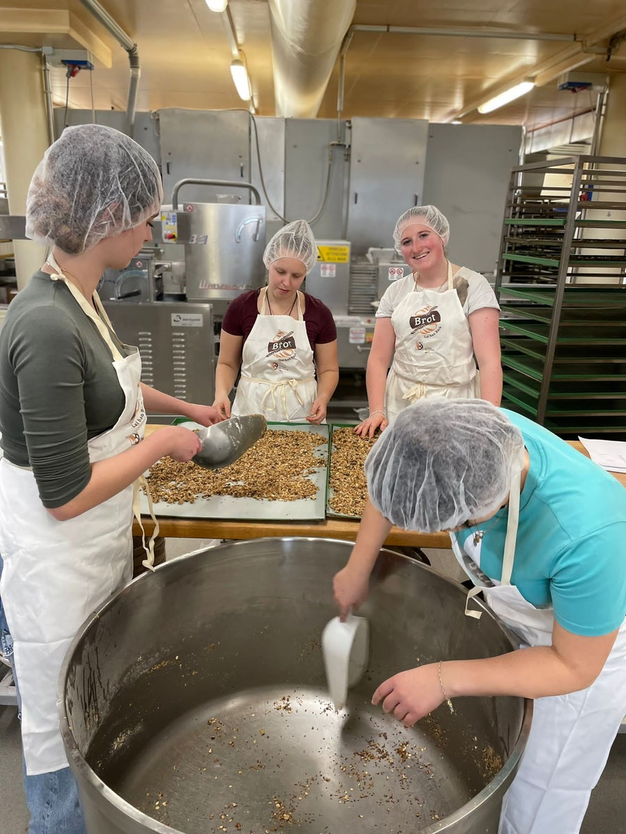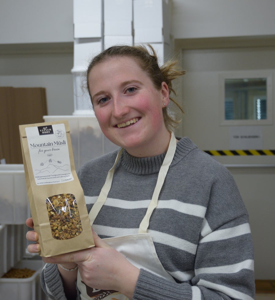 Die Tisner Schülergenossenschaft produziert und verpackt bei Ultner Brot in St. Walburg das nussig-vegane Mountain Müsli mit ihren Lehrpersonen und dem Chef von Ultner Brot Hannes Schwienbacher. Das besonders zuckerarme Müsli mit Nüssen als Hauptzutat und nachhaltiger Verpackung steht in der zweiten Märzhälfte in den Geschäftsfilialen von Ultner Brot in den Regalen. Die Abschlussklassen der Fachschule für Hauswirtschaft und Ernährung Tisens als Mitglieder der Schülergenossenschaft und der Verein Kinderherz, vertreten durch Melanie Resch, freuen sich besonders über jeden Kauf des Müslis. Geht doch ein Teil des Gewinns – nach Abzug der Produktionskosten – als Spende an die Tisner Schülergenossenschaft und an den Verein Kinderherz. Die eingegangenen Spenden werden vorrangig für Bildung und Gesundheit ausgegeben und sind somit zukunftsträchtig investiert.