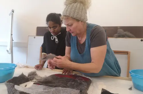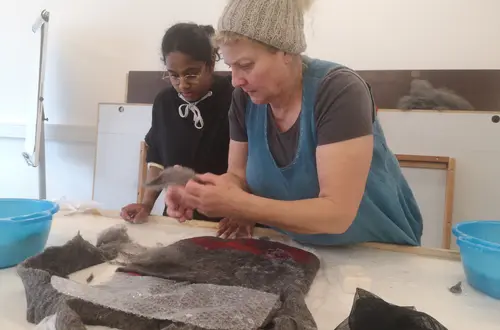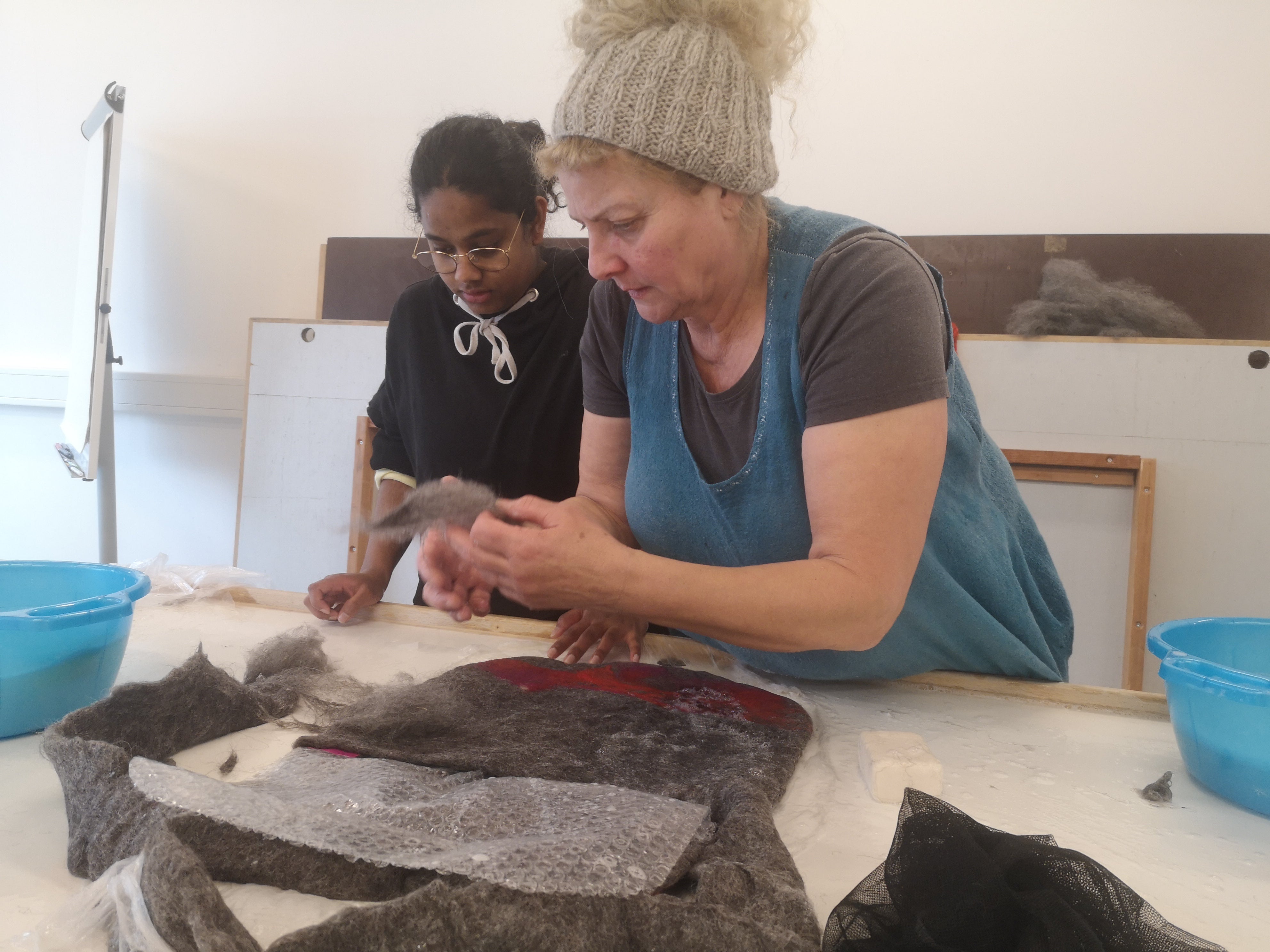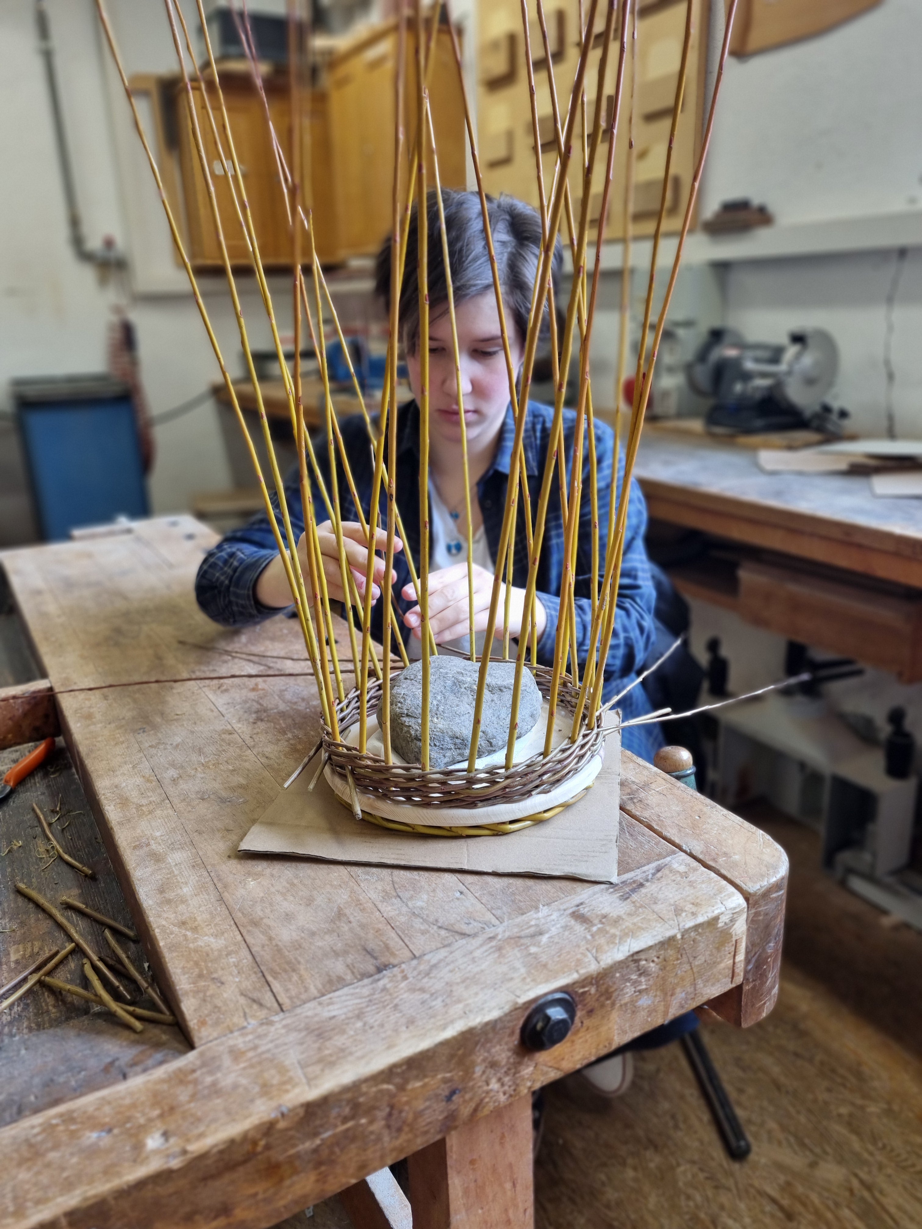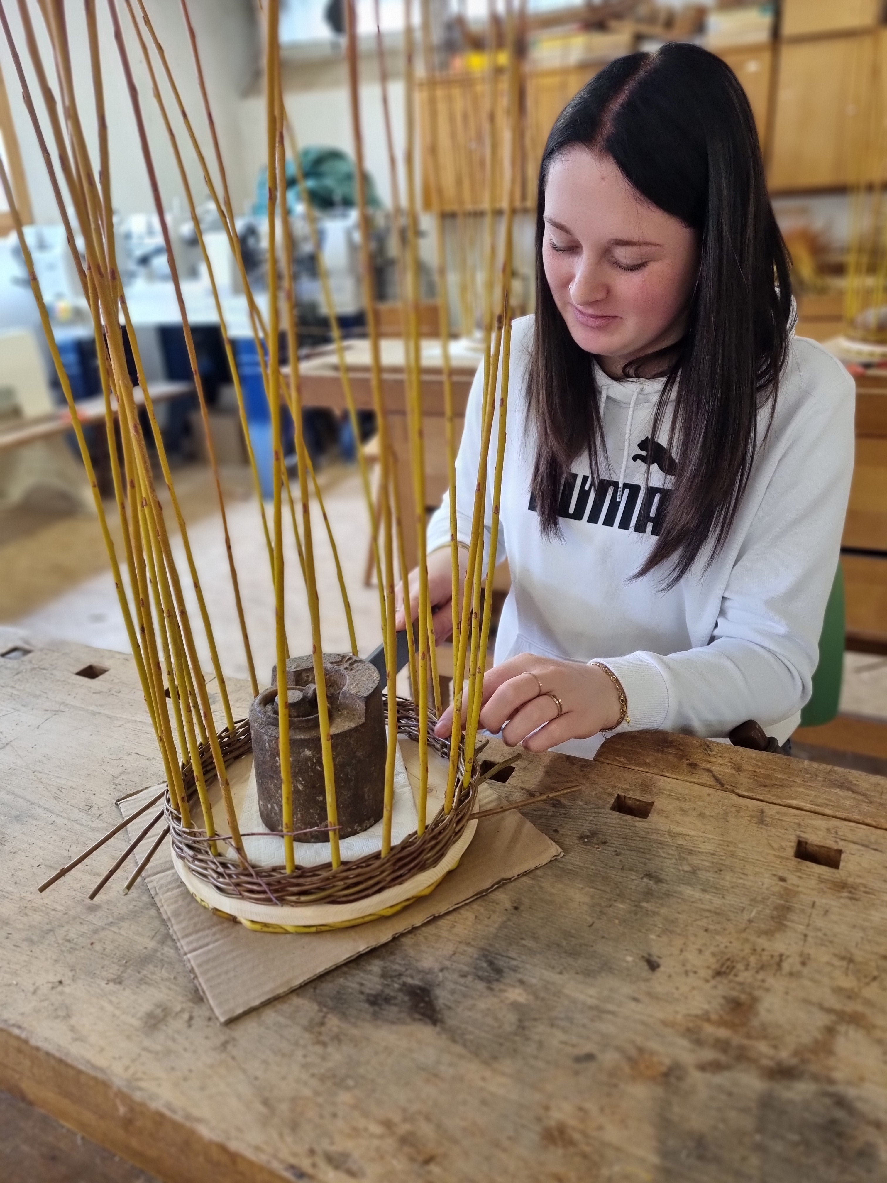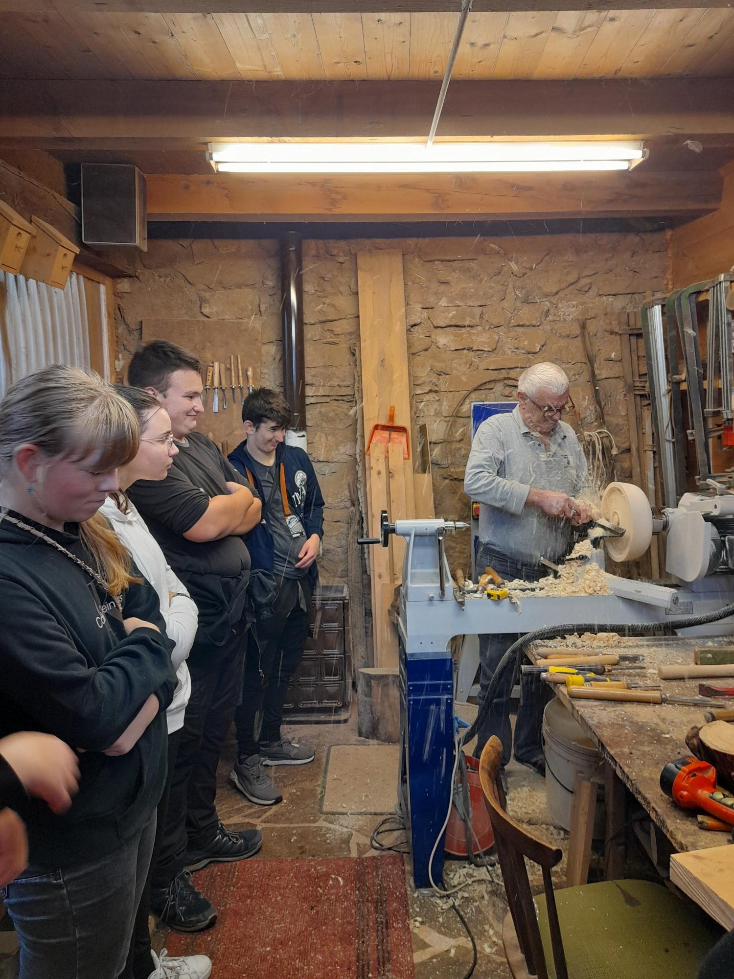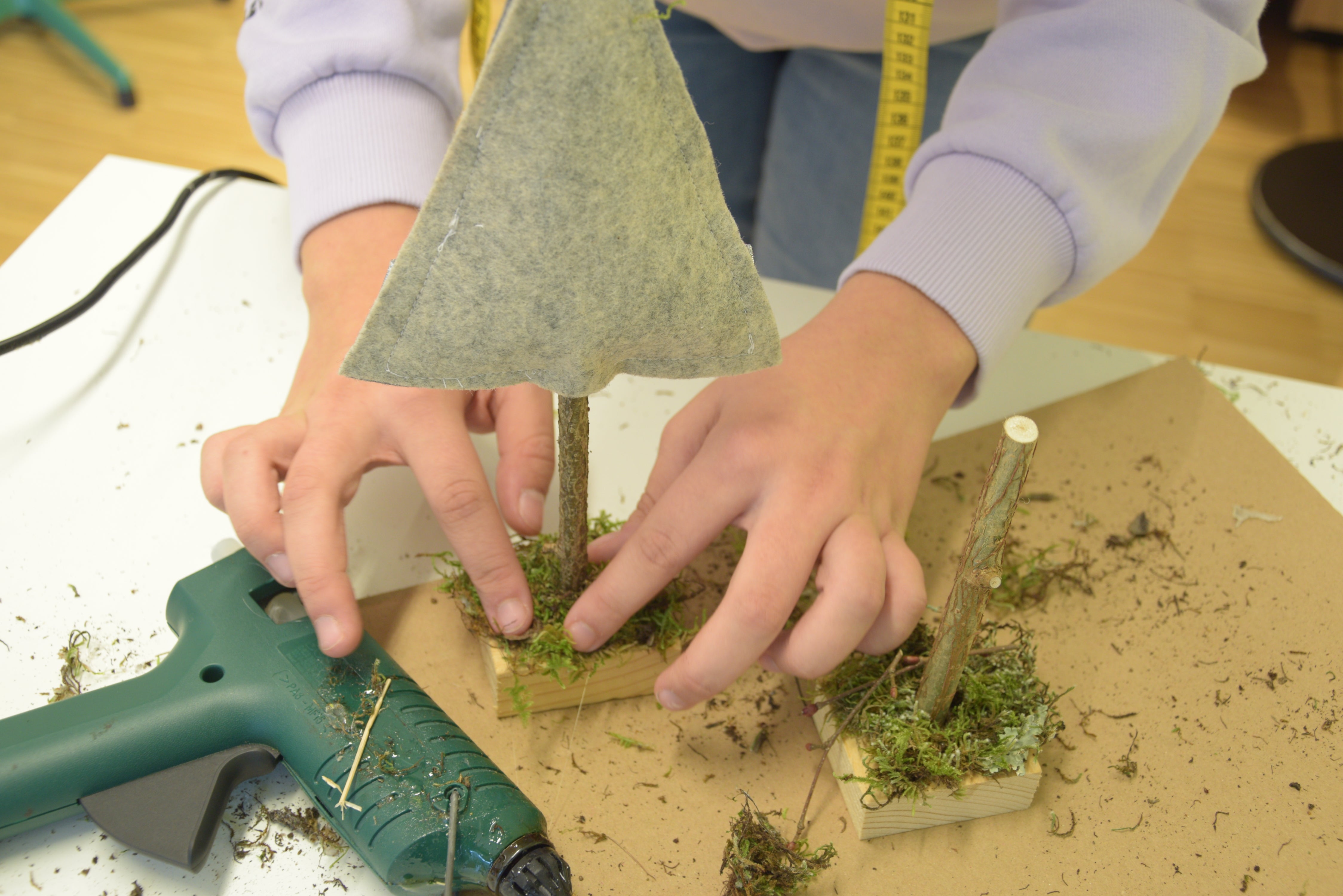 Die Klasse besuchte einen Drechsler und konnte ihm bei der Herstellung einer Holzschüssel zusehen. Das Hotel Tirolensis in Prissian wurde besichtigt und dabei besonderes Augenmerk auf die Einrichtung und Gestaltung der Zimmer und des Speisesaals gelegt. Mit der Spinnrunde Prissian konnten die Schüler:innen aus Wolle kleine Dekos (z.B. Pilze) filzen.
