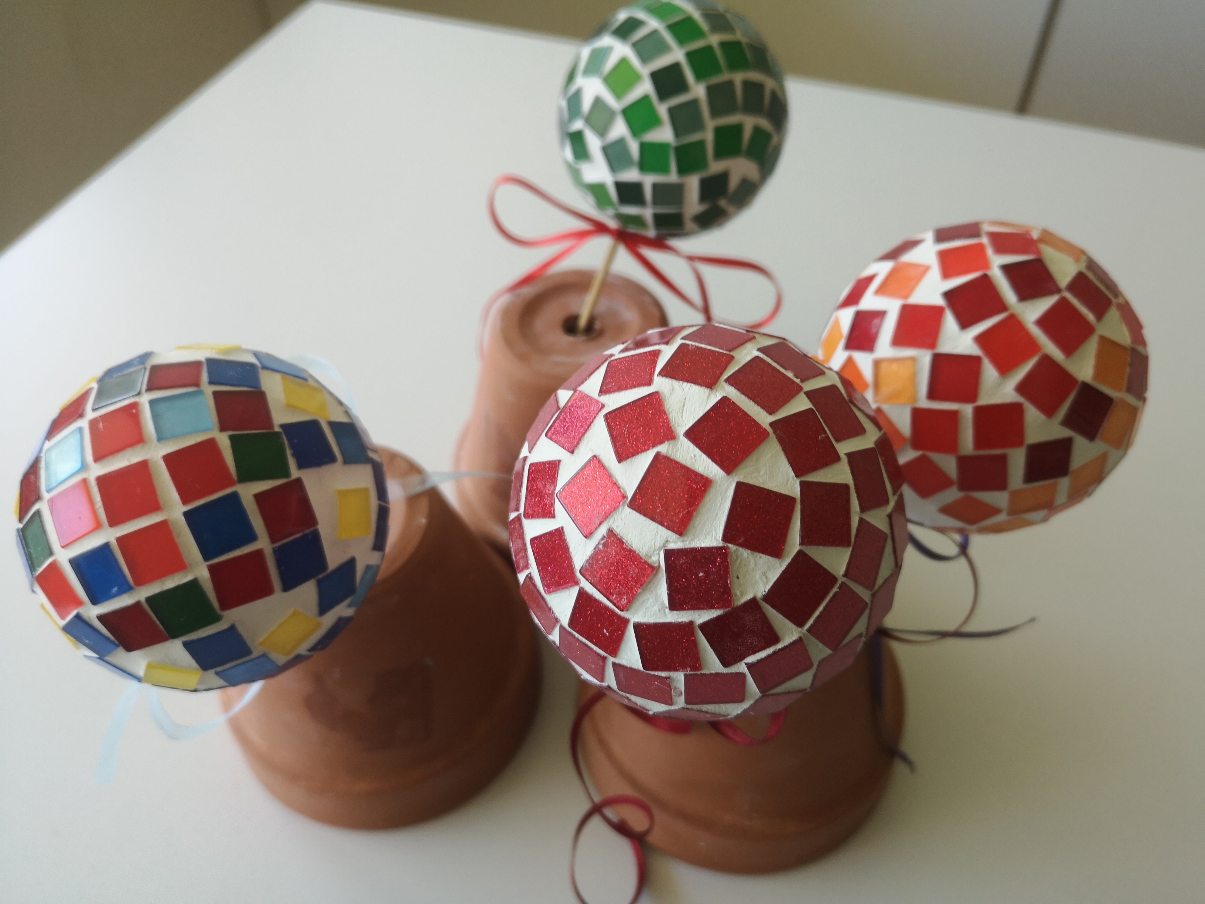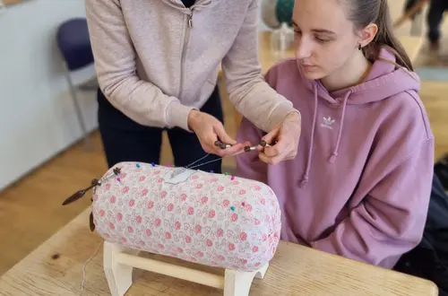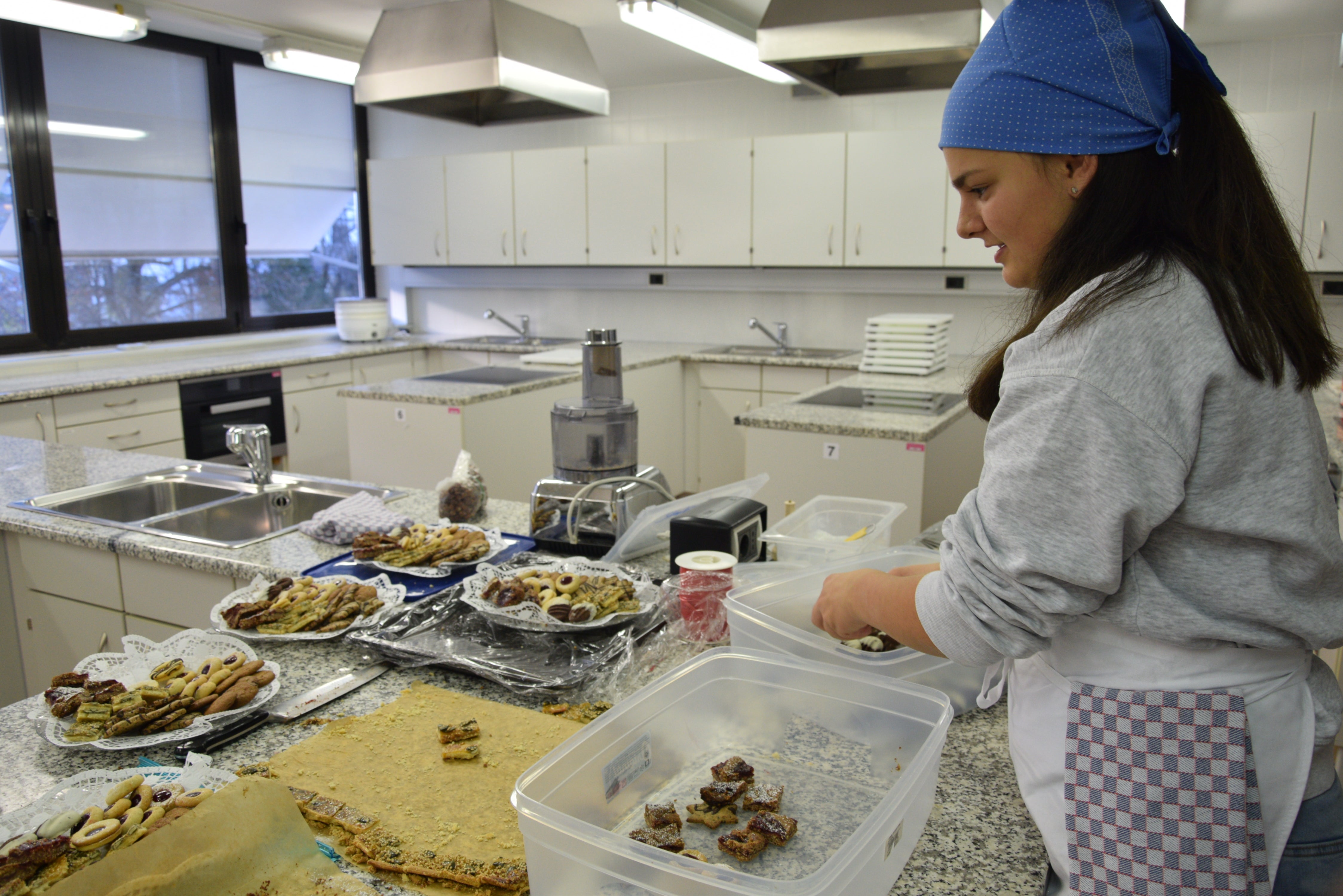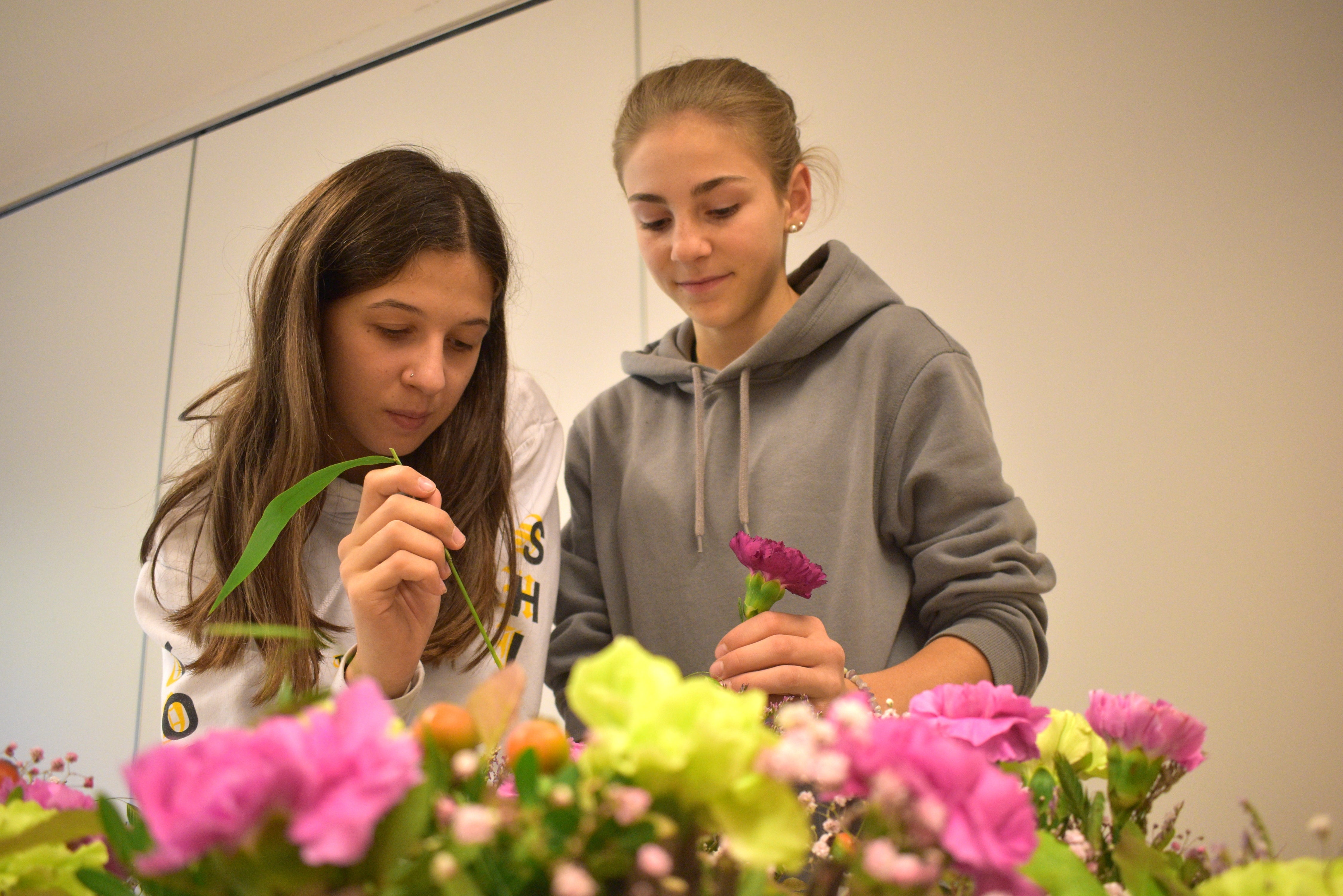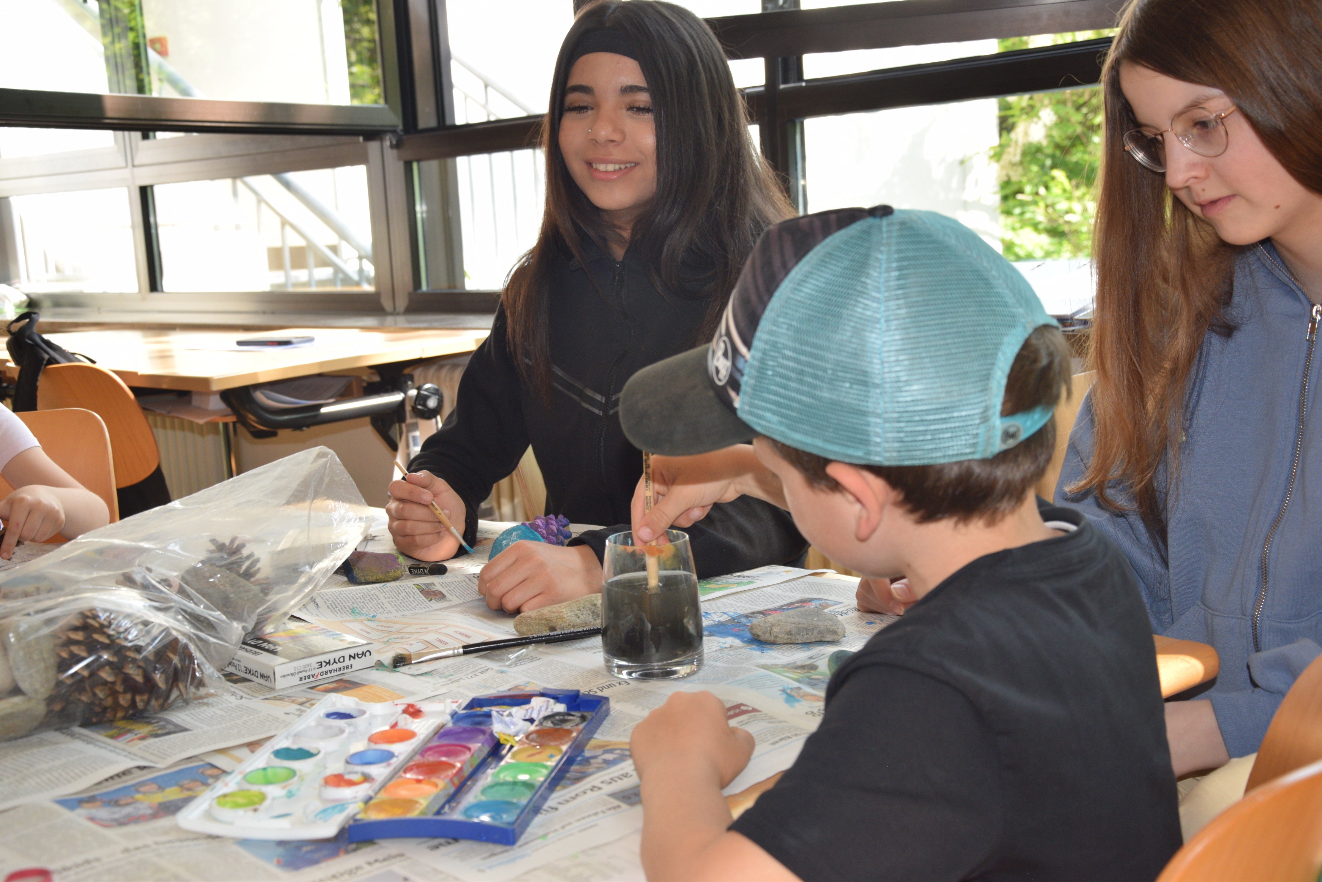 Die Schüler:innen konnten sich bei verschiedenen Stationen zuteilen: Seifen und Salben herstellen, Mosaikkugeln gestalten, Sticken lernen und üben. Das kreative Arbeiten machte allen sichtlich Spaß.