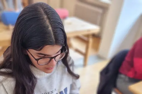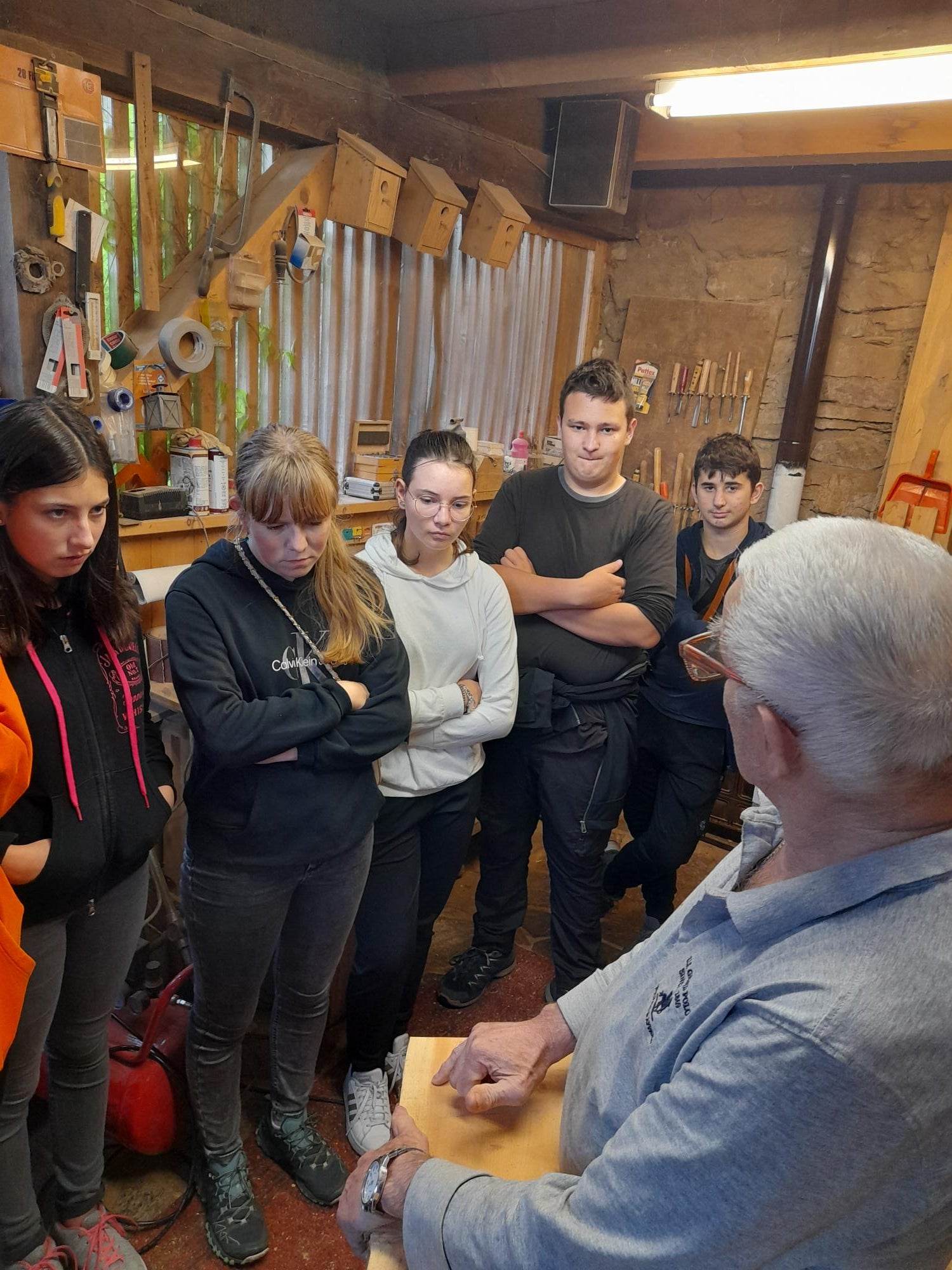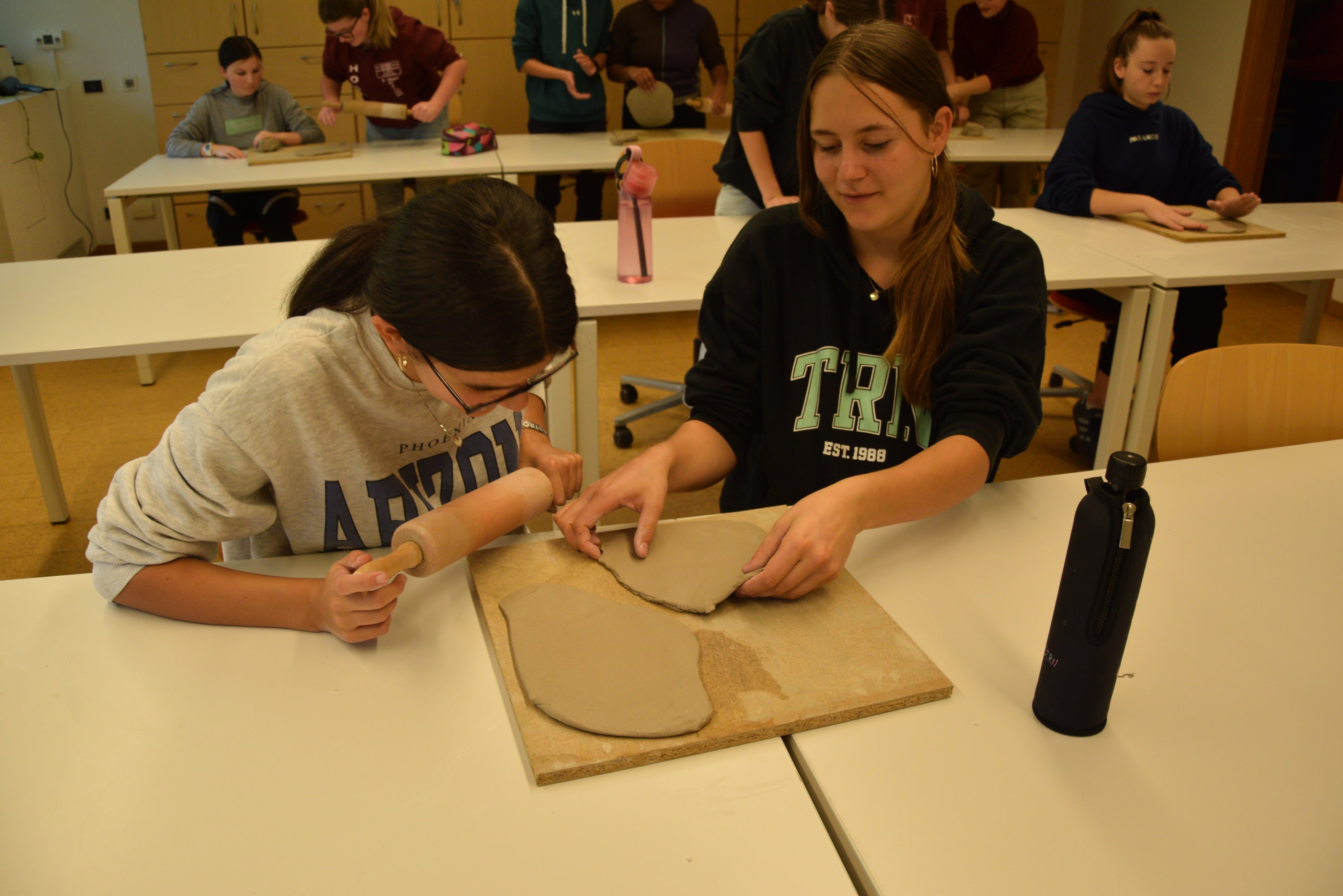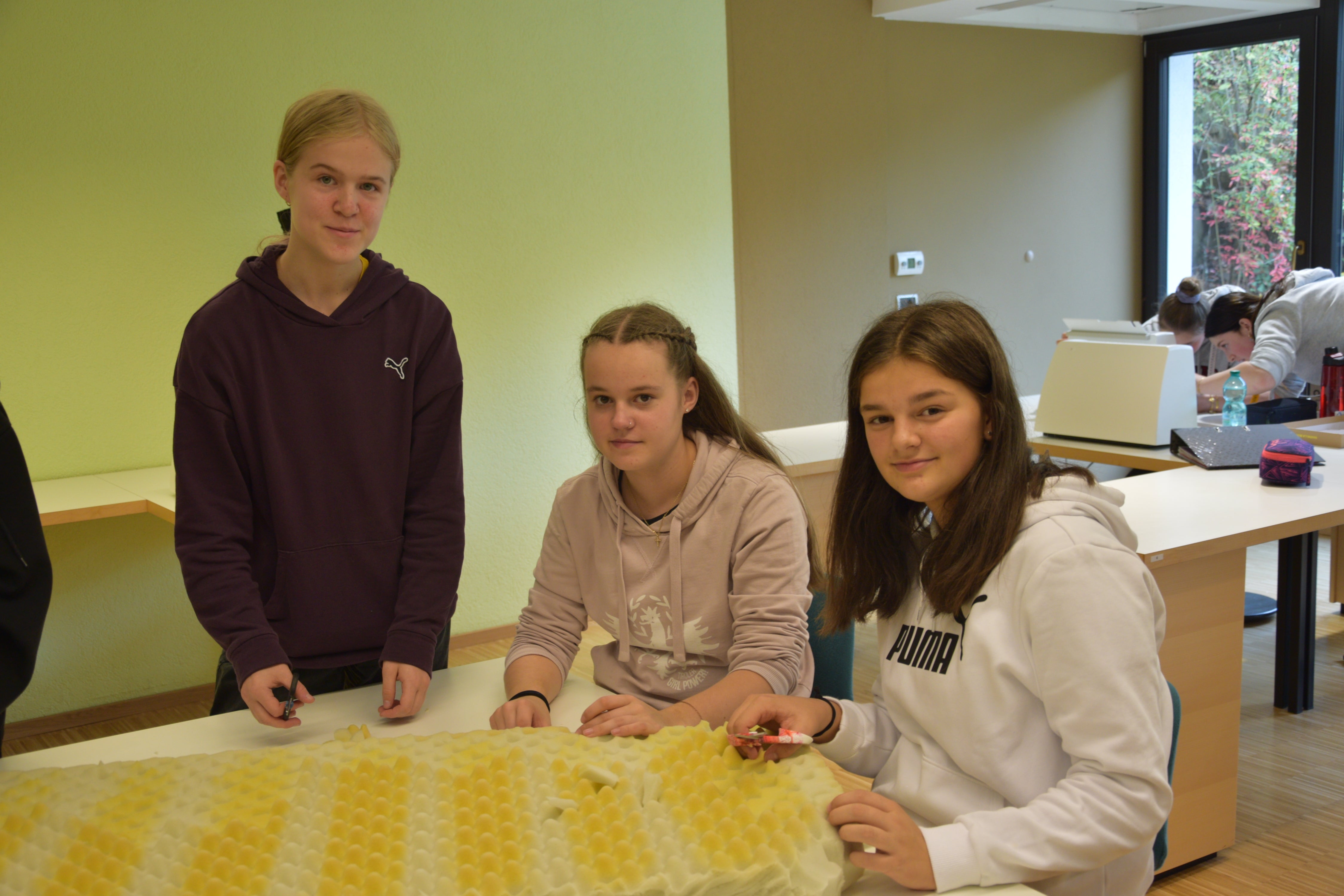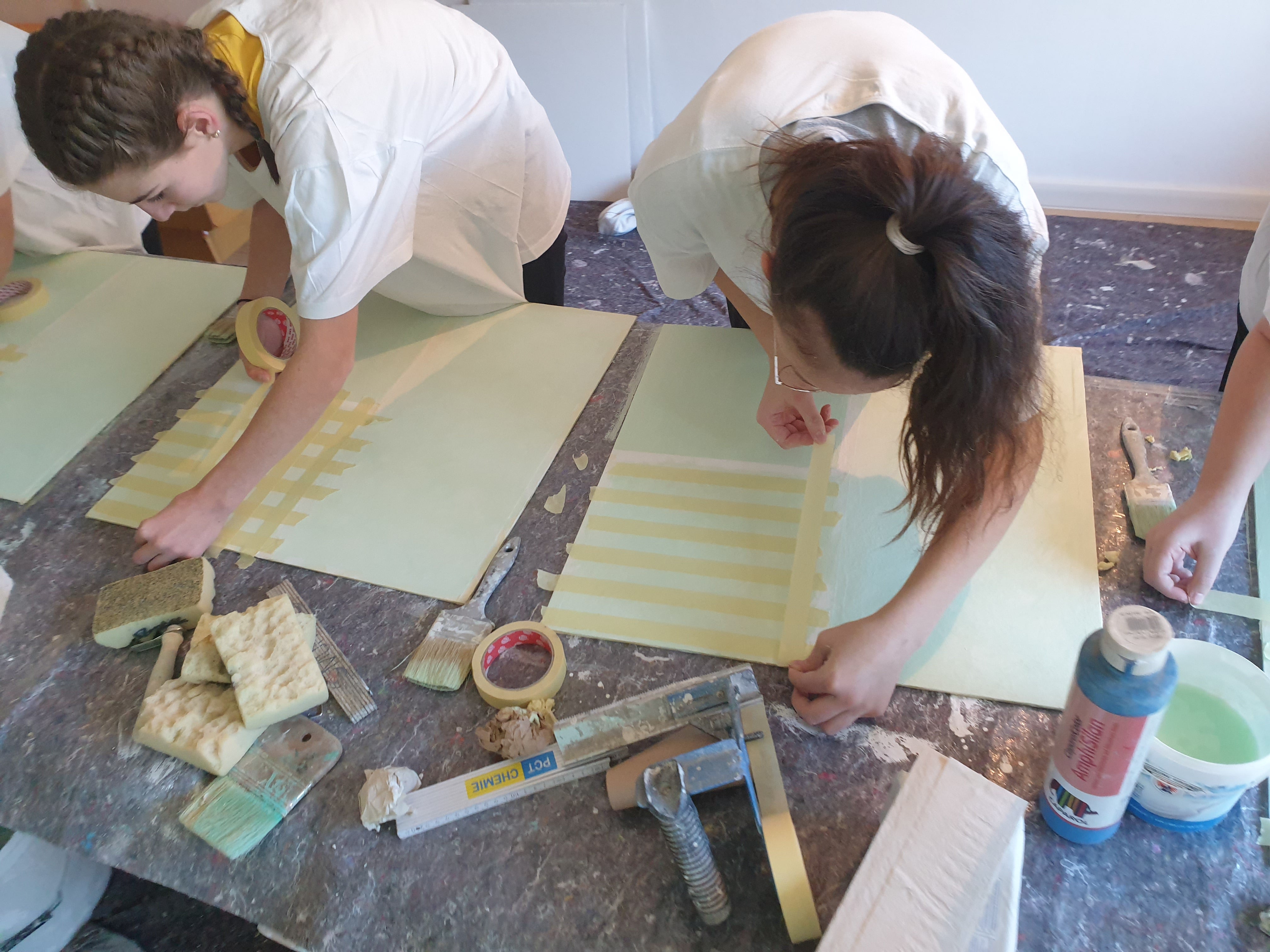 Zum Thema Gestalten und Wohnen unter der Leitung der Fachlehrerinnen Wilma Tonner und Mathilde Tribus erhielten die Schüler:innen Infos zur Wirkung der Farben auf das menschliche Wohlbefinden und zum Material Holz.