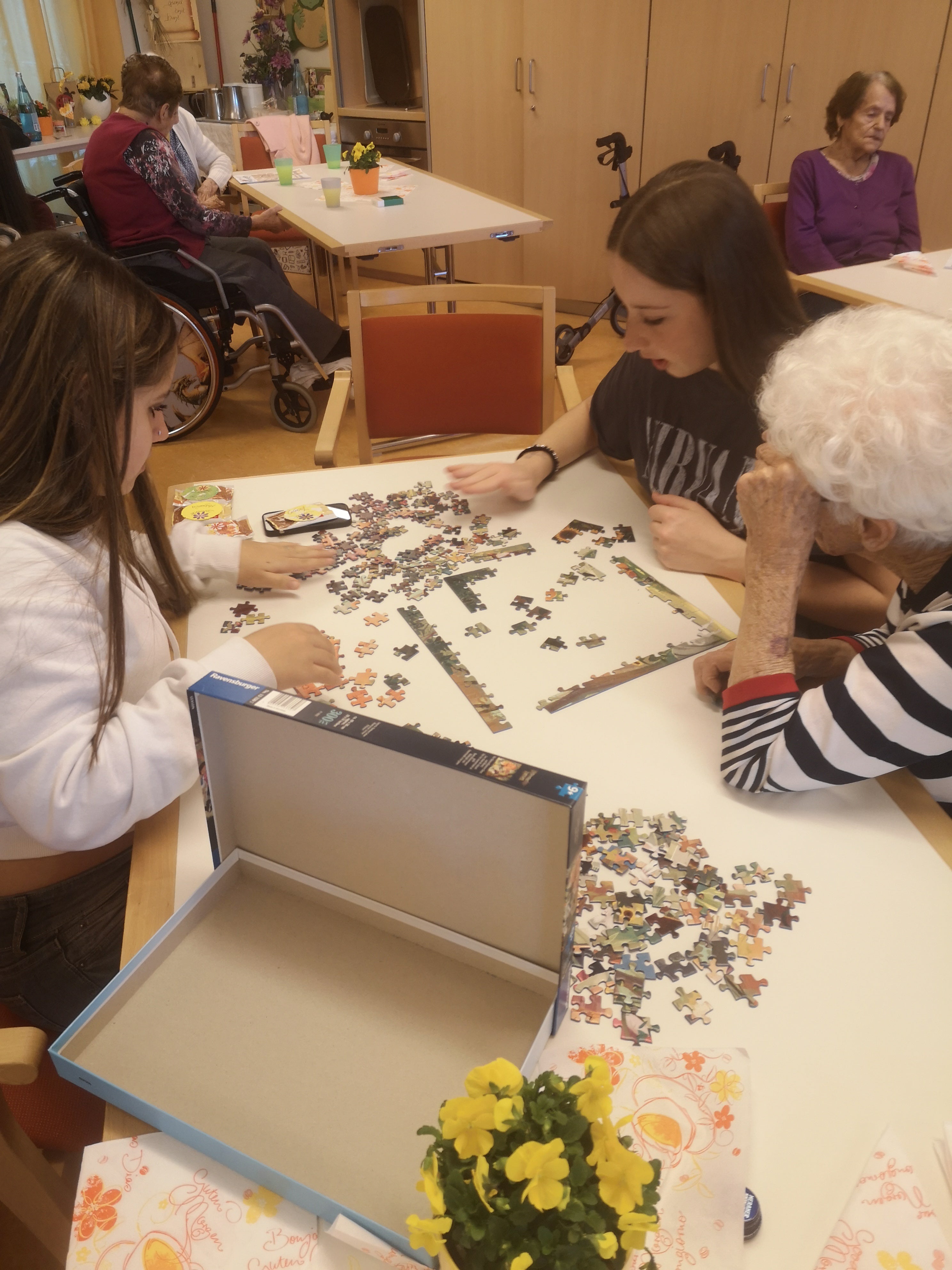 Die Schüler:innen planten und gestalteten einen Spielevormittag für Kinder des Kindergarten Tisens. Sie bereiteten mit Hilfe der Lehrpersonen verschiedene Stationen vor, wie z.B: Schminken/Frisieren, Basteln, Ballspiele, Murmelbahn, Trettraktor-Parkour... Eine Gruppe bereitete die Jause für die Kindergartenkinder vor. Fazit: Ein gelungener Vormittag für alle Beteiligten.