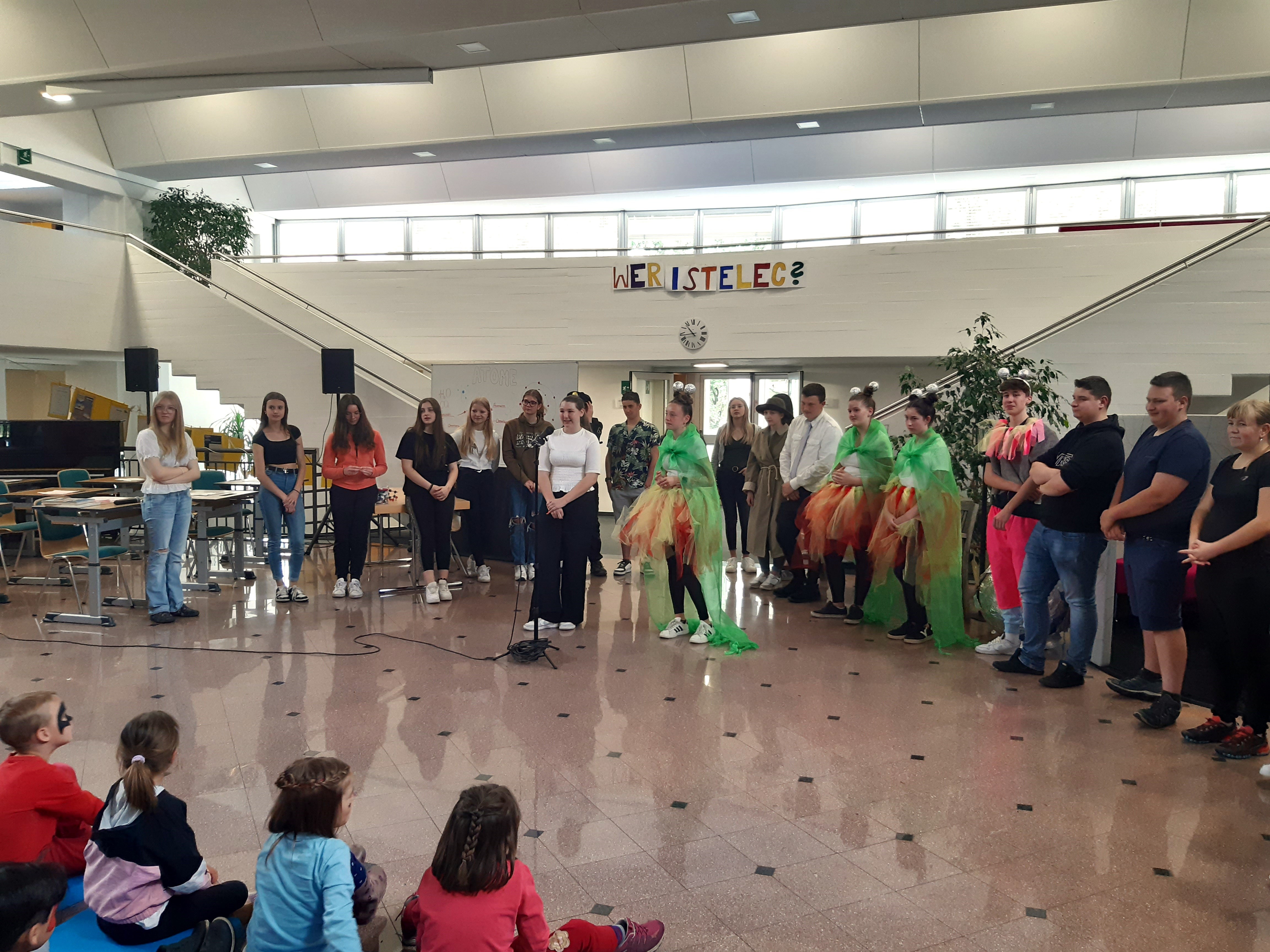 Die Schüler:innen planten und gestalteten einen Spielevormittag für Kinder des Kindergarten Tisens. Sie bereiteten mit Hilfe der Lehrpersonen verschiedene Stationen vor, wie z.B: Schminken/Frisieren, Basteln, verschieden Spiele, ... . Eine Gruppe bereitete die Jause für die Kindergartenkinder vor. Höhepunkt des Vormittages war die Aufführung des Musicals "Wer ist Elec?".