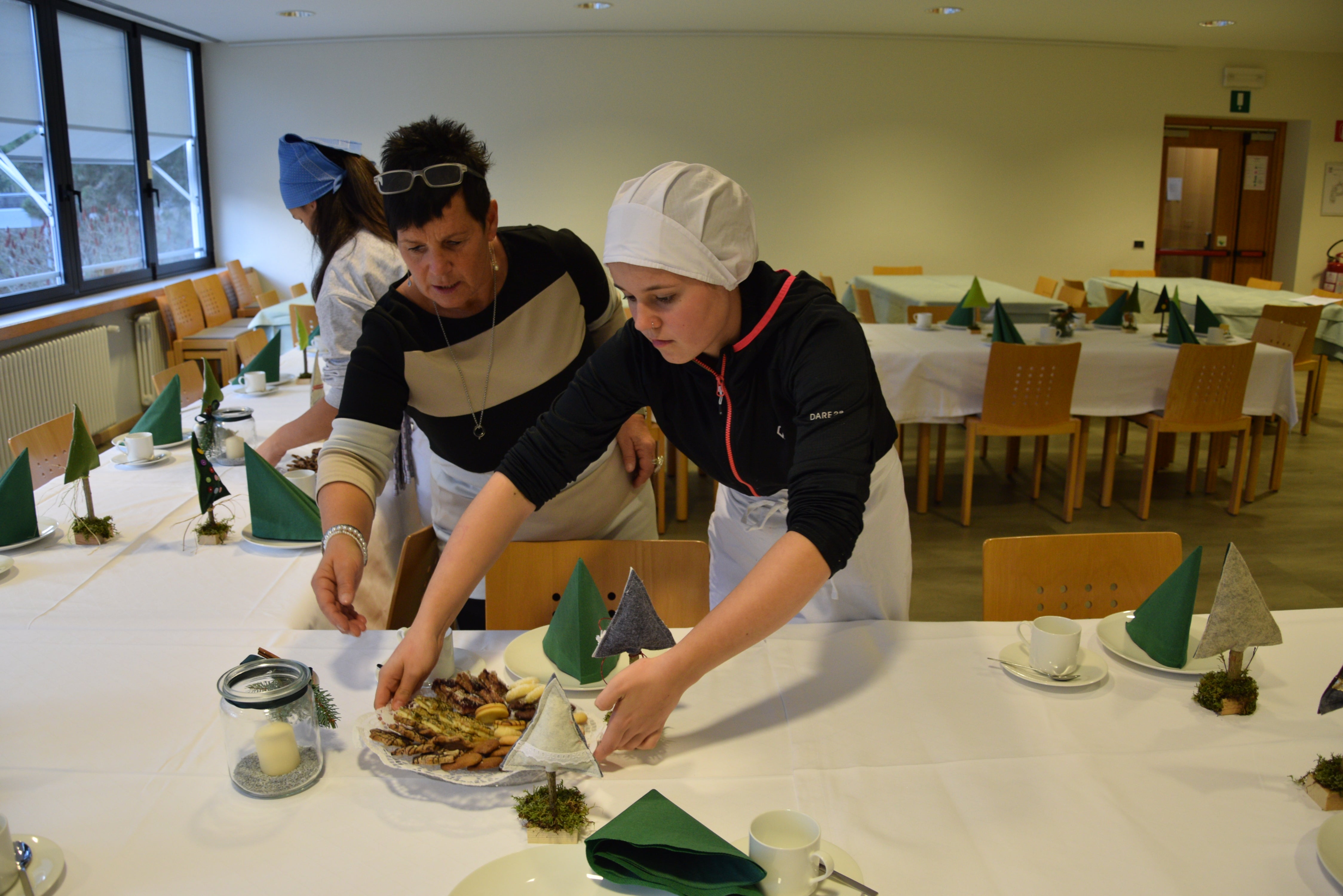 Nach nur einem Monat an der Fachschule Tisens verwöhnte die erste Klasse ihre Eltern und Lehrpersonen mit perfekt präsentierten kulinarischen Köstlichkeiten.