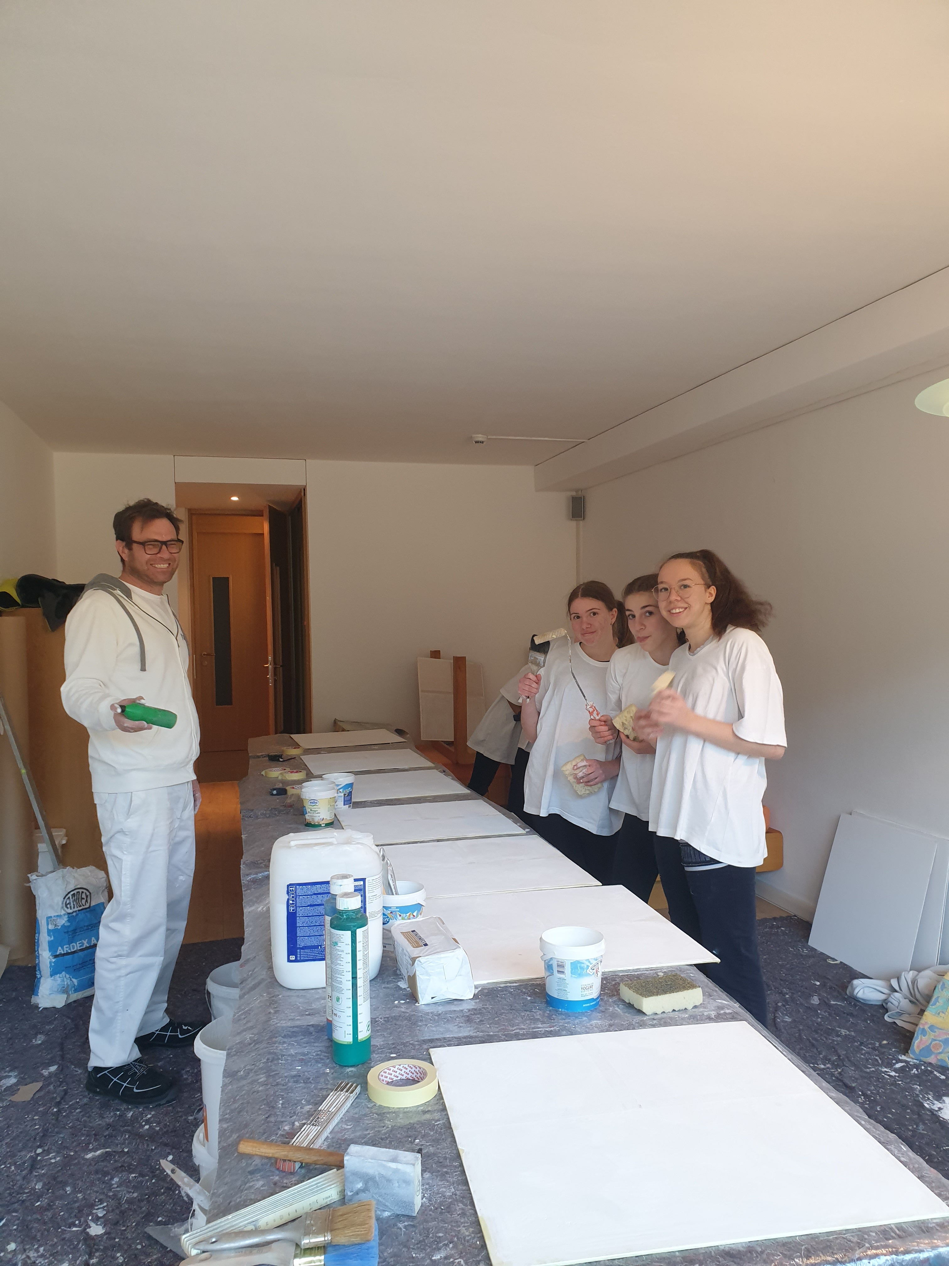 Eine Gruppe beschäftige sich mit kreativer Wandmalerei und gestaltete mit Maler Rony Pixner im Heim die Wand des Gemeinschaftsraums neu.