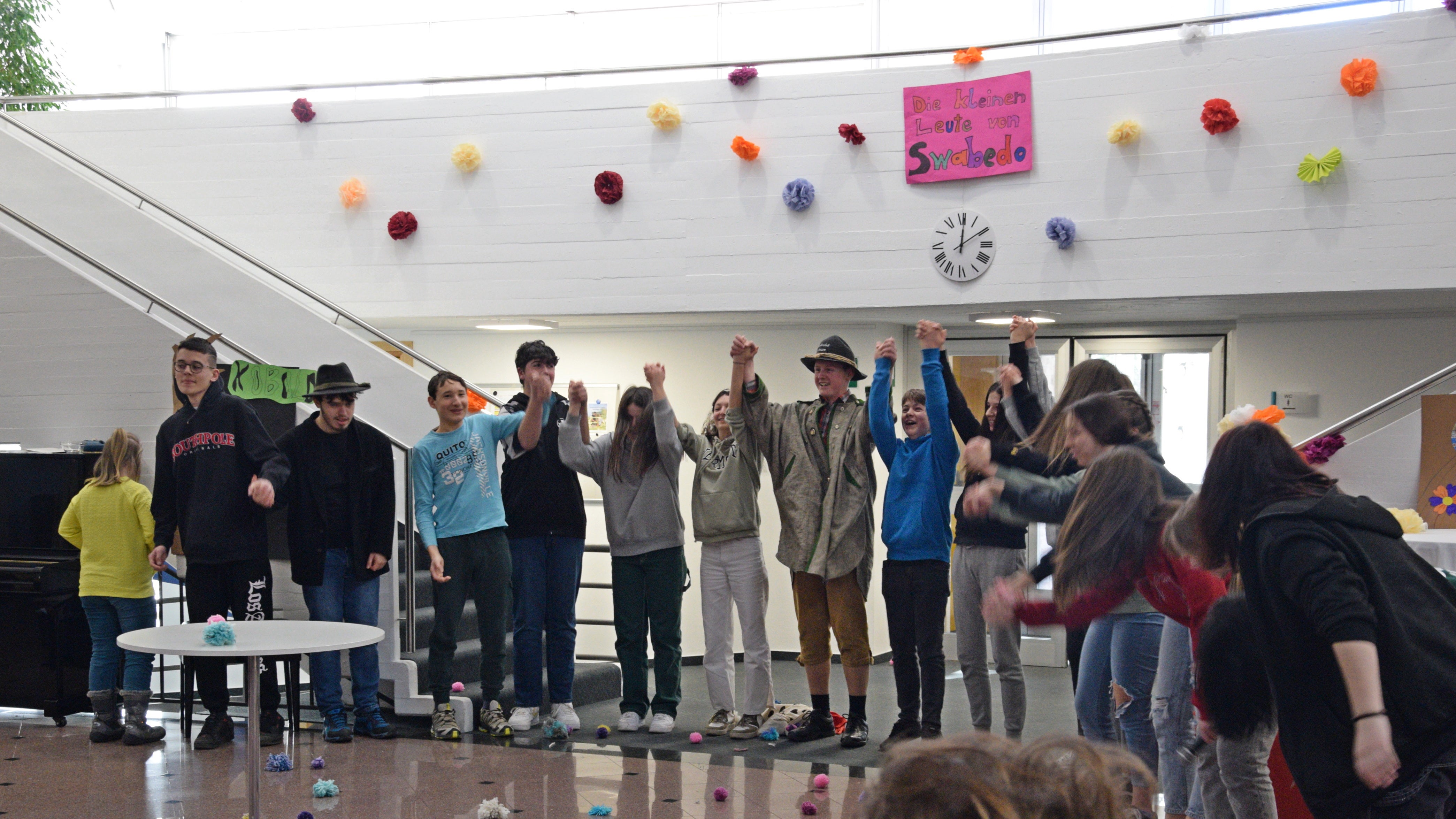 Im Jänner inszenierte die Schulpädagogin, Musikerin und Musiklehrerin Irene Eschgfeller mit einer Gruppe von Schüler:innen das Mini-Musical „Die kleinen Leute von Swabedoo“. Die Schülerinnen gestalteten selbständig das Bühnenbild und studierten die Lieder ein. Die Schulgemeinschaft war begeistert von der Aufführung.